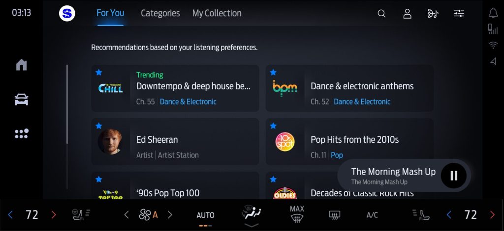 • PERSONALIZED DISCOVERY — Search less and enjoy more in their vehicle. Discover new channels and on-demand shows with hand-picked, curated “For You” recommendations that get smarter as they listen.